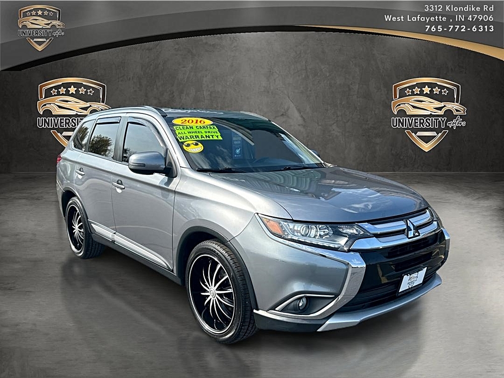 The 2016 Mitsubishi Outlander SEL AWD is ready to exceed your expectations. To see this outstanding SUV in person, visit University Motors at 3312 Klondike Road, West Lafayette, IN 47906. Contact us at (765) 532-0240 or email university.motors@outlook.com to schedule a test drive. Let our team help you find the perfect vehicle to fit your needs and budget. The road to your next adventure starts here!